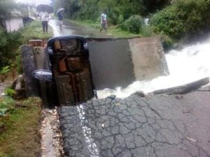 बागेश्वर में सड़क धंसने से कलमठ में गिरी कार , बाल 2 ग्राम प्रधान