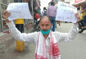 शिव मंदिर के पास शौचालय निर्माण के विरोध में प्रदर्शन