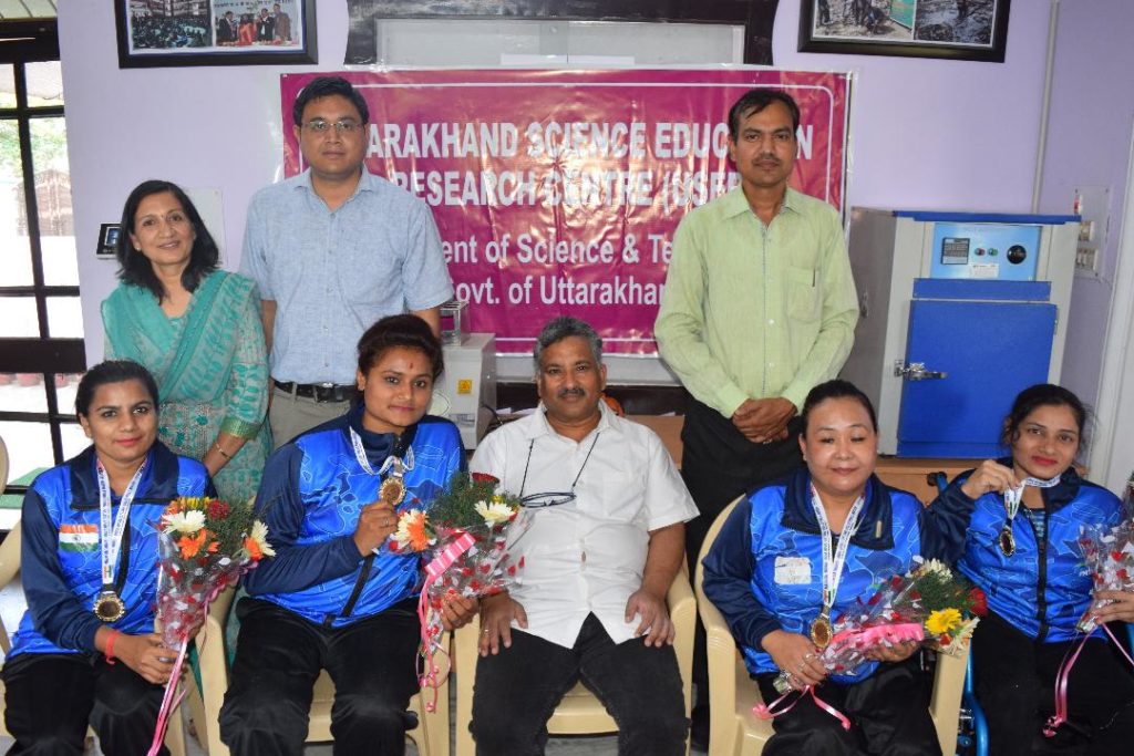 देहरादून, ( आखरीआंख ) उत्तराखण्ड विज्ञान शिक्षा एवं अनुसंधान केन्द्र (यूसर्क) द्वारा यूसर्क के नदी पुनर्जीवन केन्द्र परिसर में आयोजित कार्यक्रम में यूसर्क के निदेशक प्रो0 दुर्गेश पंत एवं उपस्थित गणमान्य वैज्ञानिकों द्वारा भारत की पहली महिला पैरा सिटिंग बालीबाल टीम को सम्मानित किया गया। प्रो0 दुर्गेश पंत ने खिालाड़ियों को सम्मानित कर प्रसन्नता व्यक्त करते हुए कहा कि ये उत्तराखण्ड के लिए अत्यन्त गौरव का विषय है। खिलाड़ियों द्वारा यह बताया गया कि इसी वर्ष बैंकाक में अन्तर्राष्ट्रीय बालीबाल मैच आयोजित किया जायेगा जिसमें भारत की ओर से महिला पैरा सिटिंग टीम भी प्रतिभाग करेगी।