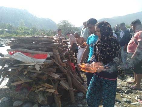 बागेश्वर ( आखरीआंख ) कपकोट क्षेत्र की दो बेटियों ने मां को कंधा दिया तथा बाद में बड़ी बेटी ने मुखाग्नि देकर अपना फर्ज निभाया। केदारेश्वर संगम पर एंजल स्कूल की संचालिका कमला गडिय़ा का शनिवार को गमगीन माहौल में अंतिम संस्कार किया गया। मालूम हो कि स्कूल की संचालिका कमला गडिय़ा पत्नी भरत सिंह गडिय़ा की शुक्रवार को जिला अस्पताल पहुंचने पहले ही हार्ट अटैक से मौत हो गई थी। उसके बाद परिजन शव को उनके मूल गांव पोथिंग ले गए। शनिवार को उनकी अंतिम यात्रा शुरू हुई। मृतका की दोनों बेटियों एंजल और लक्षिता ने मां को कंधा दिया। बाद में केदारेश्वर बगड़ में सरयू संगम पर एंजल ने मां की चिता को मुखाग्नि दी। इस दौरान हर किसी की आखें नम थी।
