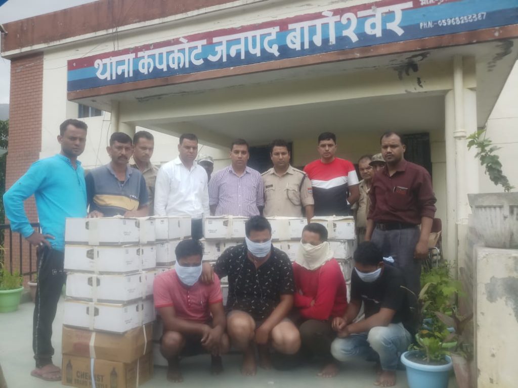 बागेश्वर एवं कपकोट पुलिस की संयुक्त टीम द्वारा 77 पेटी अवैध अंग्रेजी शराब व 03 वाहनों के साथ किये 04 अभियुक्त गिरफ्तार