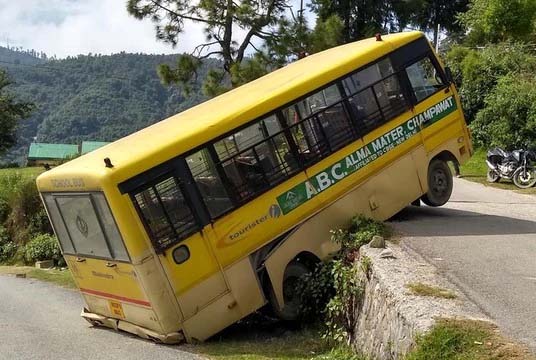 चपावत। पोलिंग पार्टियों को ब्लॉक कार्यालय में पहुंचा कर वापस लौट रही स्कूल बस सड़क से नीचे उतर गई। हादसे में बस चालक बाल बाल बच गया। रविवार अपरान्ह में बस को निकाल लिया गया। शनिवार देर सायं बस संया यूके 03 पीए 0045 लटोली, सिलिंटाक और पुनेठी की पोलिंग पार्टियों को लेकर ब्लॉक कार्यालय पहुंची। पोलिंग पार्टियों को छोडऩे के बाद चालक गिरीश चंद्र जोशी बस को बैक करने लगा। इसी दौरान बस ब्लॉक कार्यालय को जाने वाली रोड से मुडिय़ानी वाली सड़क पर उतर गई। बस को निकालने के लिए तत्काल पुलिस लाइन से क्रेन बुलाई गई। लेकिन फंसी बस को निकालने में सफलता नहीं मिली। रविवार अपरान्ह में बस को निकाल लिया गया।