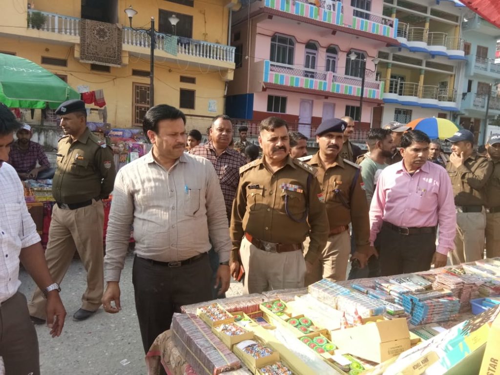 बागेश्वर। आज दीपावली पर्व के अवसर पर उपजिलाधिकारी बागेश्वर, पुलिस उपाधीक्षक बागेश्वर, तहसीलदार बागेश्वर, ई0ओ0 नगर पालिका बागेश्वर, प्रभारी अग्निशमन अधिकारी बागेश्वर व कोतवाली पुलिस बागेश्वर द्वारा* संयुक्त रूप से नगर क्षेत्र(सरयू बगड़, भोटिया मार्केट) में लगाये गये पटाखों व अन्य दुकानों की चैकिंग की गयी। चैकिंग के दौरान सड़क किनारे अतिक्रमण कर लगाये गये दुकानों को हटाया गया तथा जिन पटाखा विक्रेताओं के पास अग्निसुरक्षा के उपकरण नहीं थे, उनको उपकरण रखे जाने के सम्बन्ध में शख्त हिदायत दी गयी।