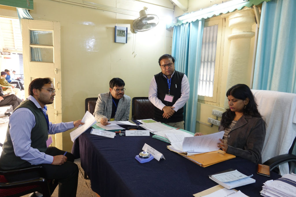 बागेश्वर । त्रिस्तरीय सामान्य निर्वाचन 2019 के तहत जिला पंचायत के अध्यक्ष एवं उपाध्यक्ष के निर्वाचन को शांतिपूर्ण ढंग से संपादित कराने के लिए राज्य निर्वाचन आयोग के जारी अधिसूचना के अनुरूप नामांकन पत्र दाखिल करने के दिन जिला पंचायत अध्यक्ष के पद के लिए दो उम्मीदवार श्रीमती बंसती देव एवं श्रीमती वंदना ऐठानी द्वारा नाम निर्देशन पत्र दाखिल किया तथा उपाध्यक्ष पद हेतु श्री नवीन परिहार एवं श्रीमती भावना देवी ने नाम निर्देशन पत्र दाखिल किया । नाम निर्देशन पत्र दाखिल करने के उपरान्त जिला मजिस्टे्रट/जिला निर्वाचन अधिकारी (पं0) रंजना राजगुरू ने दाखिल किये गये नामाकंन पत्रों की जांच की। जांच के दौरान जिला पंचायत अध्यक्ष एवं उपाध्यक्ष के लिए दाखिल किये गये सभी नामांकन पत्र सही पाये गयें।इसके उपरान्त जिला निर्वाचन अधिकारी द्वारा जिला पंचायत के अध्यक्ष एवं उपाध्यक्ष पद हेतु होने वाले निर्वाचन को शांतिपूर्ण एवं निष्पक्ष रूप से संपादित कराने के लिए की गयी तैयारियों का जायजा लिया। निरीक्षण के दौरान उन्होंने सहायक रिटर्निंग अधिकारी/अपर जिलाधिकारी राहुल कुमार गोयल को निर्देश दिये कि राज्य निर्वाचन आयोग से प्राप्त दिशा निर्देशों के अनुरूप मतदान एवं मतगणना की समस्त प्रक्रिया सीसीटीवी कैमरे की निगरानी में संपादिन की जाय, साथ ही यह भी सुनिश्चित किया जाय कि केवल अधिकृत व्यक्ति ही मतदान के दिन मतदान कक्ष में प्रवेश करें। इसके उपरान्त जिला निर्वाचन अधिकारी द्वारा विकास खंड बागेश्वर में क्षेत्र पंचायत बागेश्वर के प्रमुख, ज्येष्ठ प्रमुख व कनिष्ठ प्रमुख के लिए किये गये नामाकंन आदि व्यवस्थाओं की जानकारी भी प्राप्त की गयी। जिस पर सहायक रिटर्निंग अधिकारी/उपजिलाधिकारी बागेश्वर राकेश चन्द्र तिवारी ने जिलाधिकारी को अवगत कराया कि क्षेत्र पंचायत बागेश्वर में प्रमुख पद हेतु 02 उम्मीदवारों श्रीमती आरती टम्टा एवं श्रीमती पुष्पा देवी, ज्येष्ठ प्रमुख हेतु 02 उम्मीदवारों दीप चन्द्र काण्डपाल एवं श्रीमती पुष्पा रौतेला तथा कनिष्ठ प्रमुख हेतु 02 उम्मीदवारों घनश्याम तिवारी एवं श्रीमती चांदनी टम्टा ने नाम निर्देशन पत्र दाखिल किये जांचोपरान्त सभी नामांकन पत्र सही पाये गये।सहायक रिटर्निंग अधिकारी कपकोट प्रमोद कुमार ने अवगत कराया है कि क्षेत्र पंचायत कपकोट में ब्लॉक प्रमुख हेतु 02 उम्मीदवार अर्जुन भट्ट एवं गोविन्द सिंह दानू, ज्येष्ठ प्रमुख हेतु 02 उम्मीदवार चामू सिंह एवं हरीश सिंह तथा कनिष्ठ प्रमुख हेतु 02 उम्मीदवार कवीन्द्र सिंह एवं भूवेश सिंह द्वारा नाम निर्देशन पत्र दाखिल किये जांचोपरान्त सभी नामांकन पत्र सही पाये गये। सहायक रिटर्निंग अधिकारी गरूड जय वर्द्धन शर्मा ने अवगत कराया 
