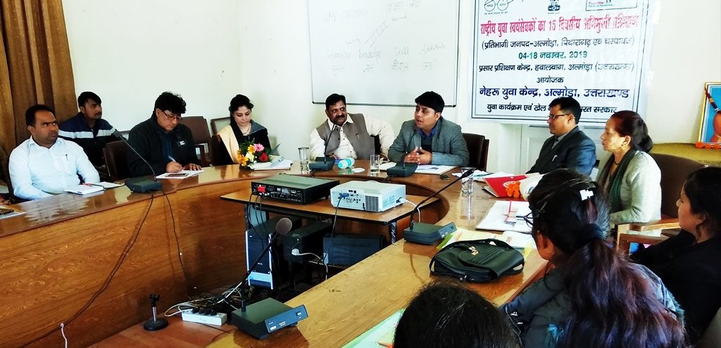अल्मोड़ा । -युवा कार्यक्रम एवं खेल मंत्रालय भारत सरकार व नेहरू युवा केन्द्र अल्मोड़ा संयुक्त तत्वाधान में राष्ट्रीय युवा स्वयंसेवकांे का 15 दिवसीय अभिमुखी प्रशिक्षण का आज प्रसार प्रशिक्षण केन्द्र हवालबाग में शुरूआत हो गयी। इस प्रशिक्षण के शुभारम्भ के अवसर पर बतौर मुख्य अतिथि जिलाधिकारी नितिन सिंह भदौरिया ने प्रशिक्षार्थियों को सम्बोधित करते हुए कहा कि जो भी प्रशिक्षण लिया जाय हो उसमें अनुशासित होना अति आवश्यक है। उन्होंने स्वयंसेवको से कहा कि वे अपने दैनिक दिनचर्या में कुछ न कुछ श्रमदान अवश्य करें। जिलाधिकारी ने कहा कि प्रतिदिन किसी न किसी प्रशासनिक अधिकारी को व्याख्यान देने के लिए निर्देशित किया गया है। उन्होंने सभी स्वयंसेवकों को विभिन्न संस्थानों का भ्रमण करवाने के निर्देश भी दिये।