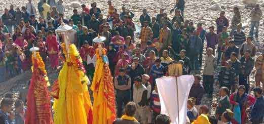 रुद्रप्रयाग। विगत वर्षों की भांति इस बार एकादशी की पूर्व संध्या पर दरमोला व स्वीली-सेम के ग्रामीण देव निशानों को पारंपरिक वाद्य यंत्रों के साथ गंगा स्नान के लिए अलकनंदा-मंदाकिनी के तट पहुंचे। यहां पर रात्रिभर जागरण करने व देवताओं की चार पहर की पूजाएं संपन्न की। इस अवसर पर भंडारे का आयोजन भी किया गया। शुक्रवार सुबह पांच बजे ग्रामीणों ने भगवान बद्रीविशाल, लक्ष्मीनारायण, शंकरनाथ, तुंगनाथ, नागराजा, चामुंडा देवी, हित, ब्रहमडुंगी, भैरवनाथ समेत कई देव के निशानों के साथ ही पांडवों के अस्त्र-शस्त्रों का गंगा स्नान कराया गया। जिसके उपरान्त पुजारी व ब्राह्मणों ने भगवान बद्री विशाल समेत सभी देवताओं की वैदिक मंत्रोचारण के साथ विशेष पूजा अर्चना शुरू की तथा यहां पर हवन व आरती के साथ देवताओं का तिलक किया गया।यहां दूर दराज क्षेत्रों से पहुंचे स्थानीय भक्तों के जयकारों से पूरा वातावरण भक्तिमय हो गया। इस दौरान देव निशानों ने नृत्यकर भक्तों को आशीर्वाद भी दिया। यहां पर पूजा अर्चना के पश्चात सभी देव निशानों ने ढोल नगाडों के साथ अपने गंतव्य के लिए प्रस्थान किया। ग्राम पंचायत दरमोला में प्रत्येक वर्ष अलग-अलग स्थानों पर पांडव नृत्य आयोजन की परपरा है। एक वर्ष दरमोला तथा दूसरे वर्ष राजस्व गांव तरवाड़ी में पांडव नृत्य का आयोजन होता है। इस वर्ष दरमोला में देव निशानों की स्थापना कर पांडव नृत्य का भव्य रूप से शुभारंभ हो गया है। मान्यता है कि इस दिन भगवान नारायण पांच महीनों की निन्द्रा से जागते हैं, जिससे इस दिन को शुभ माना गया है। इस अवसर पर जसपाल सिंह पंवार, पुजारी कीर्तिराम डिमरी, गिरीश डिमरी, किशन रावत, लक्ष्मी प्रसाद डिमरी, अरविंद पंवार, मोहित डिमरी, विकास डिमरी, सुरेन्द्र रावत, वेदप्रकाश डिमरी, हुकम सिंह, विजय सिंह, पान सिंह, दान सिंह, रविन्द्र पंवार, अनिल पंवार, रविन्द्र डिमरी, भारत भूषण भटट समेत बड़ी संया में भक्त उपस्थित थे।
