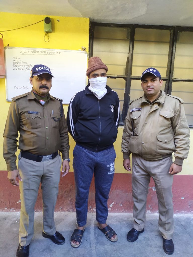 बागेश्वर। दिनांक 24.11.2019 को रोहित मेहता पुत्र श्री नारायण सिंह मेहता निवासी ग्राम- नाघर, पो0- बटगेरी, जिला- पिथौरागढ़ ने थाना कोतवाली में तहरीर दी कि प्रकाश गोस्वामी पुत्र श्री गोविन्द गिरी निवासी ग्राम काण्डे (थपलिया ) पो0- दोफाड़ चौकी रीमा हाल- इन्द्रलोक बार के पास तहसील रोड बागेश्वर द्वारा वादी के पिताजी के साथ मारपीट करते हुए कोल्ड ड्रिंक की बोतल से सिर पर मारकर पिताजी को घायल किया गया। वादी द्वारा दी गई तहरीर के आधार पर थाना कोतवाली में मु0अ0सं0- 145/19 धारा- 324/504 भादवि बनाम प्रकाश गोस्वामी उपरोक्त पंजीकृत किया गया। मामले में त्वरित संज्ञान लेते हुए *उ0नि0 मदन लाल, प्रभारी कोतवाली बागेश्वर द्वारा* अभियुक्त की गिरफ्तारी हेतु पुलिस टीम गठित की गयी । पुलिस टीम के अथक प्रयासों द्वारा अभियुक्त को आज दिनांक 25.11.19 को गिरफ्तार किया गया । जिसे माननीय न्यायालय बागेश्वर के समक्ष पेश किया जा रहा है ।