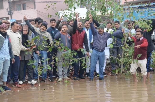रूड़की में जलभराव की समस्या के विरोध में सड़क पर रौपे पौधे