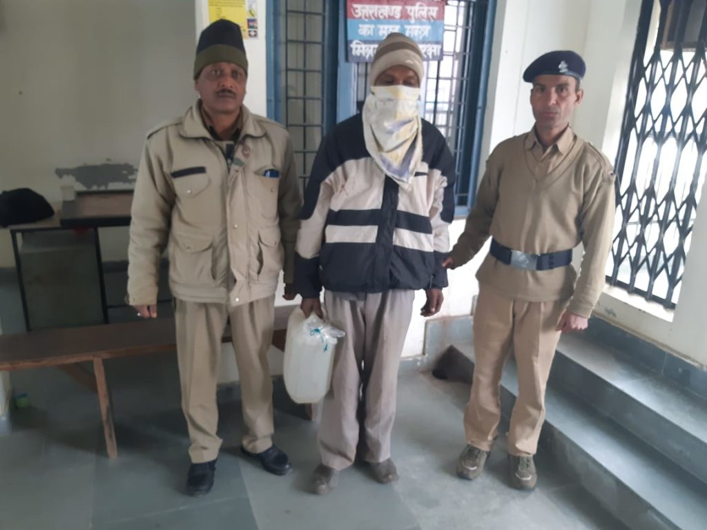 बागेश्वर। श्रीमती प्रीति प्रियदर्शिनी पुलिस अधीक्षक बागेश्वर के आदेशानुसार अवैध शराब/मादक पदार्थों के विरूद्ध चलाये जा रहे अभियान के तहत सुश्री संगीता पुलिस उपाधीक्षक कपकोट के निर्देशन में व श्री तिलक राम वर्मा प्रभारी निरीक्षक थाना कपकोट के नेतृत्व में* दिनांकः 24-12-2019 को थाना पुलिस द्वारा रात्रि गस्त के दौरान अभियुक्त प्रेम राम पुत्र पाना राम निवासी- गुलेर, थाना- कपकोट, बागेश्वर को 10 लीटर कच्ची शराब खाम के साथ गिरफ्तार किया गया। जिस सम्बन्ध में थाना हाजा पर मु0अ0सं0- 75/19, धारा- 60 आबकारी अधिनियम का अभियोग पंजीकृत किया गया। गिरफ्तार अभियुक्त को आज दिनांकः 25-12-2019 को माननीय न्यायालय के समक्ष पेश किया जाएगा।