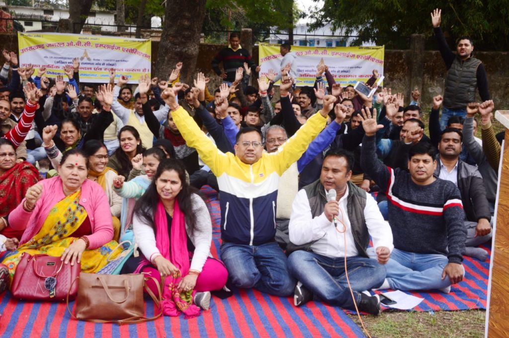 रामनगर । गोविन्द रावत । प्रमोशन में आरक्षण को समाप्त करने के सम्बन्ध में उत्तराखण्ड जनरल-ओ.बी.सी. इम्लाईज एसोसिएशन के तत्वाधान में हड़ताल के चौथे दिन विभिन्न विभागों के कर्मचारियों एवं अधिकारियों द्वारा धरना प्रदर्शन किया गया। हड़ताली कर्मचारियों को सम्बोधित करते हुए उत्तर भारत पटवारी/कानूनगो संघ के महासचिव तारा चन्द्र घिल्डियाल ने अपने वक्तव्य में कहा कि प्रमोशन में आरक्षण कोरोना वायरस की तरह है । यदि समय रहते सरकार प्रमोशन मे आरक्षण को समाप्त नही करती है। तो राज्य आन्दोलन की तरह ही पूरे प्रदेश मे आन्दोलन बहुत उग् व ब्यापक रूप ले लेगा। तारा चन्द्र घिल्डियाल के नेतृत्व में गठित सचल दल ने आज फारेस्ट कम्पाउण्ड के अन्तर्गत स्थित सभी राजकीय कार्यालयों मे अपनी टीम के साथ औचक निरीक्षण किया। टीम को देखकर कई जनरल ओ बी सी कर्मचारी घरना स्थल की ओर दौड पडे। जब कि काॅर्बेट टाइगर रिजर्व के प्रघान सहायक नौशाद सिददीकी जो कि अब तक आन्दोलन से दूरी बनाये हुए थे । सचल दल ने उनका फूलो की माला से स्वागत कर गांघीगिरी के द्वारा विरोघ किया। कार्यक्रम के अंत मे सभी हडताली कर्मचारियों ने उत्तराखंड शासनादेश संख्या 297 दिनाक 11.09.2019 । जिसमे पदोन्नति मे आरक्षण के सम्बन्घ मे रोक थी की प्रतियाँ जलाकर नारे लगाये। कार्यक्रम की अध्यक्षता तारा सिंह मावडी, जबकि संचालन मनमोहन सिंह बिष्ट, के द्वारा किया गया । हडताली कर्मचारियों को अर्जेन्द्र जोशी, रविन्द्र चोरसिया, उमाशंकर कुकरेती, गिरीश पडलिया, अर्जुन सिंह पलवाल, बृज मोहन सिंह रावत, रमेश चन्द्र नैनवाल, नंदा बल्लभ पुनेठा, आंनद सिंह रावत, कंचन डालाकोटी, आदि ने सम्बोघित किया। जब कि घरना स्थल पर रामनगर इकाई के सचिव ग्रेट वलिया, हेमंत कुमार यादव, गीता नेगी,