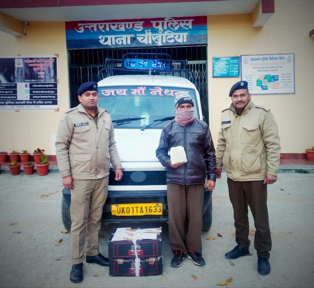 चौखुटिया पुलिस ने 2 पेटी शराब के साथ एक युवक को किया गिरफ्तार, वाहन सीज