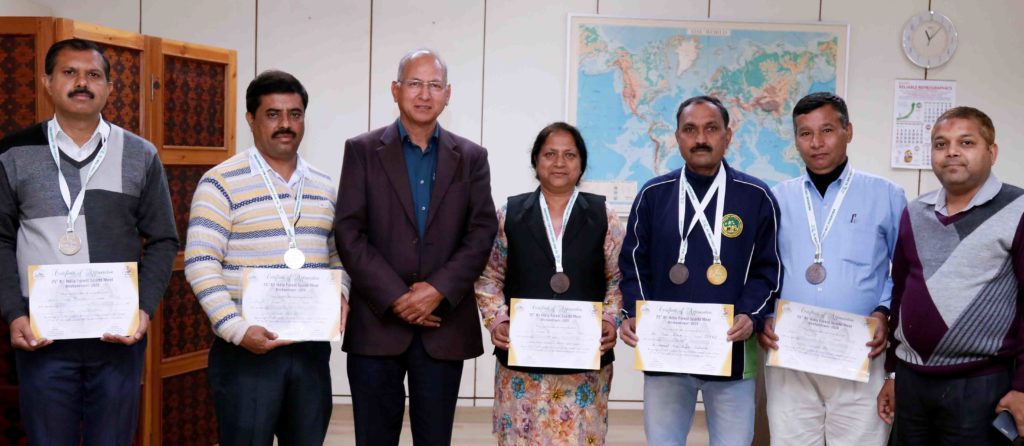 देहरादून। भारतीय वानिकी अनुसंधान एवं शिक्षा परिषद् देहरादून ने 03 से 07 मार्च तक भुवनेश्वर, ओडिसा में आयोजित 25वीं अखिल भारतीय वन खेल महोत्सव 2020 में भाग लिया। भा.वा.अ.शि.प. की तरफ से विभिन्न श्रेणियों में कुल 26 प्रतिभागियों ने भारोत्तोलन, बैडमिंटन, टेबल टेनिस, लॉन टेनिस, कैरम, ब्रिज और क्रिकेट की प्रतियोगिताओं में हिस्सा लिया। डॉ. सुरेश गैरोला, महानिदेशक, भा.वा.अ.शि.प. के उर्जस्वी नेतृत्व में प्रतिभागियों ने भारोत्तोलन, बैडमिंटन तथा लॉन टेनिस की प्रतियोगिताओं में 5 पदक (एक स्वर्ण, दो रजत, दो कांस्य) जीते और 23वां स्थान हासिल किया। कंचन देवी, उपमहानिदेशक (शिक्षा) एवं डॉ. जावेद अशरफ, वैज्ञानिक, भा.वा.अ.शि.प. दल के क्रमश: केंद्रीय अधिकारी एवं टीम प्रबंधक थे। शकील अहमद ने बैडमिंटन में स्वर्ण पदक जीता, मृदुल साकिया तथा डॉ. पीएस रावत एवं एसएस पुंडीर ने क्रम भारोत्तोलन तथा बैडमिंटन में रजत पदक जीते तथा कंचन देवी, शकील अहमद तथा विष्णु ने क्रमश: लॉन टैनिस तथा बैडमिंटन में कास्य पदक जीते।