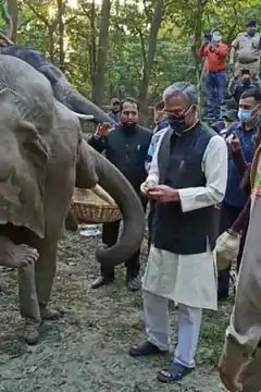 सीएम ने की जंगल सफारी, हाथियों को खिलाया चारा