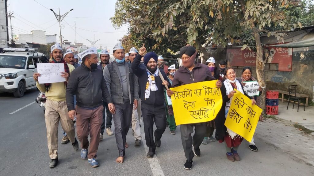 किसानों के समर्थन में आप ने निकाला पैदल मार्च