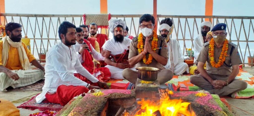 हरिद्वार। कुंभ मेला आईजी संजय गुंयाल ने बैरागी कैंप स्थित श्री ज्ञान गंगा गौशाला पहुंचकर महंत रामदास महाराज के साथ भगवान हनुमान जी की पूजा अर्चना कर विश्व शांति के लिए हवन यज्ञ किया। इस दौरान महंत रामदास महाराज ने कहा कि धार्मिक अनुष्ठानों से देश में नई ऊर्जा का संचार होता है। हवन यज्ञ के आयोजन से तेजस्विता, प्रखरता एवं उत्कृष्टता का प्रशिक्षण मिलता है। यज्ञ पवित्र प्रक्रिया है, जिसके द्वारा अपावन एवं पावन के बीच संपर्क स्थापित किया जाता है। उन्होंने कहा कि कुंभ मेला आईजी संजय गुंयाल एक होनहार अधिकारी हैं। जिन्होंने विषम परिस्थितियों में आयोजित कुंभ मेले के तीन शाही स्नान सकुशल संपन्न कराए। ऐसे कर्मठ अधिकारियों की देश को आवश्यकता है। पतित पावनी मां गंगा की कृपा से कुंभ मेला निर्विघ्न संपन्न होगा। कुंभ मेला आईजी संजय गुंयाल ने कहा कि वह सौभाग्यशाली हैं जो उन्हें धार्मिक अनुष्ठानों में शामिल होने का अवसर मिला है। उन्होंने कहा कि श्री ज्ञान गंगा गौशाला आकर उन्हें 2010 कुंभ मेले की याद ताजा हो गई है। जब अखाड़ा परिषद के पूर्व अध्यक्ष श्रीमहंत ज्ञान दास महाराज के सानिध्य में उन्होंने कुंभ मेला आयोजन में हिस्सा लिया था। उन्होंने कहा कि निश्चित तौर पर ही संत महापुरुषों द्वारा किए गए हवन यज्ञ एवं धार्मिक अनुष्ठानों से आसुरी शक्तियों का नाश होता है और देश मैं खुशहाली आती है। उन्होंने कहा कि जल्द ही कोरोना महामारी संत महापुरुषों के आशीर्वाद से संपूर्ण विश्व से समाप्त होगी और हर और खुशहाली लौटेगी। उन्होंने कहा कि कुंभ मेले का अंतिम शाही स्नान सकुशल संपन्न हो इसके लिए हवन यज्ञ के माध्यम से कामना की गई है। साथ ही विश्व कल्याण के लिए भी भगवान हनुमान महाराज से आशीर्वाद प्राप्त किया। इस दौरान महामंडलेश्वर मनमोहन दास, महंत राघवेंद्र दास, महंत दिनेश दास, उजैन श्री नाग छत्रेश्वर महादेव मंदिर से आए आचार्य पंडित मनीष दुबे, पंडित गोपाल उपाध्याय, पंडित उदित जोशी, पंडित वैभव शुक्ला, पंडित तुषार शुक्ला, पंडित गौरव पंचोली, पंडित प्रखर इंदु आदि उपस्थित रहे।