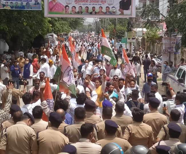 महंगाई व बेरोजगारी को लेकर कांग्रेस ने किया सीएम आवास कूच