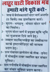लाहूर घाटी विकास मंच का 6 सूत्री माँगो को लेकर धरना शुरू