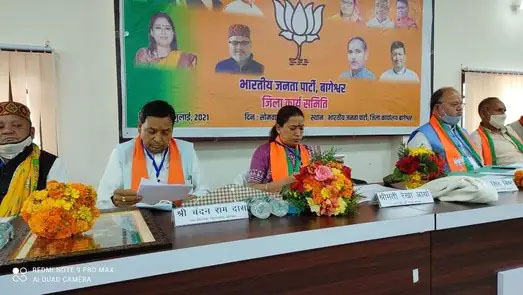 बागेश्वर। भाजपा जिला कार्यसमिति की बैठक में कार्यकर्ताओं को प्रदेश मंत्री सुरेश भट्ट व प्रभारी मंत्री रेखा आर्या ने चुनाव तैयारी के टिप्स दिए। बैठक में बार बार, भाजपा सरकार का संकल्प के साथ जनता के बीच जाने का निर्णय लिया। पार्टी कार्यालय में जिला कार्यसमिति की बैठक में कार्यसमिति के सदस्यों की बंद कमरे में बैठक आयोजित हुई। सूत्रों से मिली जानकारी के अनुसार बैठक में पिछले कार्यक्रमों व सरकार के कार्यों की समीक्षा की गई तथा आगामी कार्यक्रमों पर चर्चा की गई। प्रभारी मंत्री रेखा आर्या ने कहा कि प्रत्येक कार्यकर्ता प्रदेश सरकार के कार्यों से उत्साहित है। उन्होंने कहा कि बार-बार भाजपा सरकार के नारे के साथ जनता के बीच जाया जाएगा। बताया जा रहा है कि भाजपा के प्रदेश महामंत्री व नरेंद्र मोदी टीम के खास सदस्य सुरेश भट्ट ने जनता की मंशा के अनुरूप कार्य करने को कहा। उन्होंने संगठन की दृष्टि से भाजपा को सबसे बढ़ा संगठन बताते हुए कहा कि कार्यकर्ता आगामी चुनावों में यह साबित करेगा कि भाजपा ही राज्य हित में कार्य कर सकती है। उन्होंने कार्यकर्ताओं को चुनाव पूर्व तैयारियों के टिप्स दिए तथा संगठन की गतिविधियों की जानकारी दी। बैठक में विधायक चंदनदास व बलवंत सिंह भौर्याल, जिला पंचायत अध्यक्ष बसंती देव, शेर सिंह गडिय़ा, ब्लॉक प्रमुख गोविंद दानू, सवित्री नगरकोटी, गीता ऐठानी, रवि करायत समेत जिला कार्यसमिति के सदस्य व विभिन्न मोर्चे के पदाधिकारी उपस्थित थे। अध्यक्षता जिलाध्यक्ष शिव सिंह बिष्ट व संचालन डॉ. राजेंद्र परिहार ने किया।