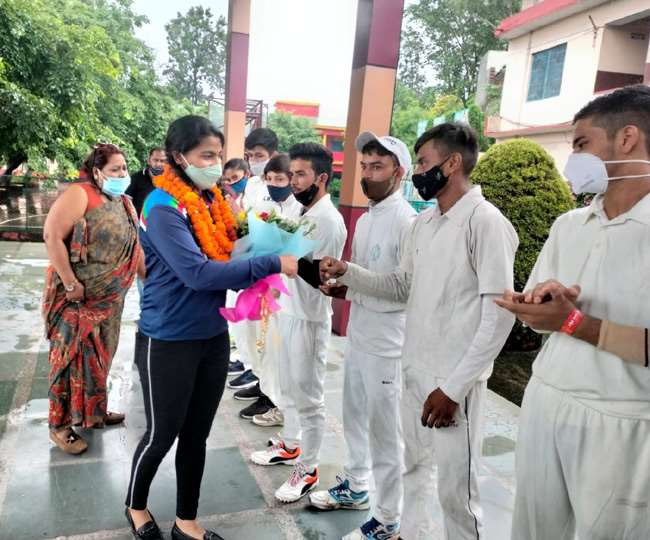 इंग्लैंड दौरे से लौटी युवा क्रिकेटर स्नेह राणा का दून पहुंचने पर जोरदार स्वागत