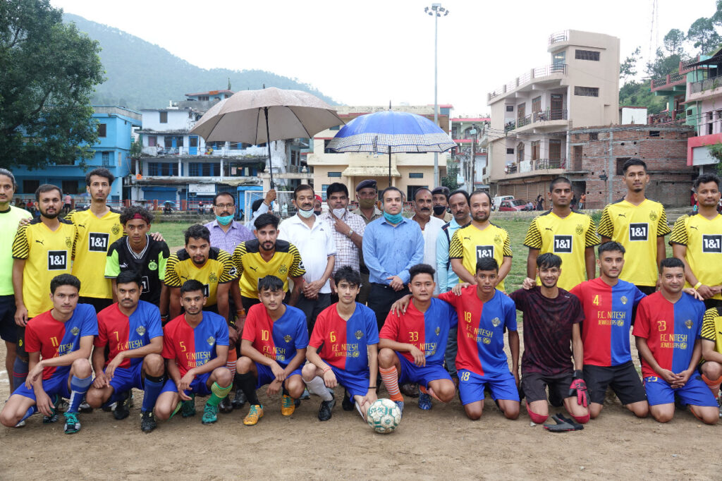बागेश्वर । जनपद बागेश्वर सजृन की 25वीं वर्षगॉठ मनाये जाने के अवसर पर खेल विभाग के तत्वाधान में विभिन्न खेल प्रतियोगिताओं का आयोजन किया गया, जिसमें बागेश्वर के ऐतिहासिक नुमार्इशखेत मैदान में 04 दिवसीय फुटबाल प्रतियोगिता का आयोजन किया गया, जिसका फार्इनल मैच आज माउंट बजुरी एवं नितेश ज्वैलर्स की टीम के बीच खेला गया जिसमें मुख्य अतिथि जिलाधिकारी विनीत कुमार ने टीम के खिलाड़ियों से परिचय प्राप्त करते हुए फाइनल मैच का शुभारम्भ किया। मैच का परिणाम इस प्रकार से रहा पहला गोल मैच के 6वें मिनट में माउंट बजुरी के दीपक गडिया द्वारा अपने टीम के खाते में डाला मध्यान्तर तक माउंट बजुरी की टीम 1-0 की बढ़त बनायी मध्यान्तर के बाद दोनों टीमें संघर्ष करती रही किन्तु कोर्इ गोल नहीं कर पायी, अंत में माउंट बजुरी टीम 1-0 से विजय रही।