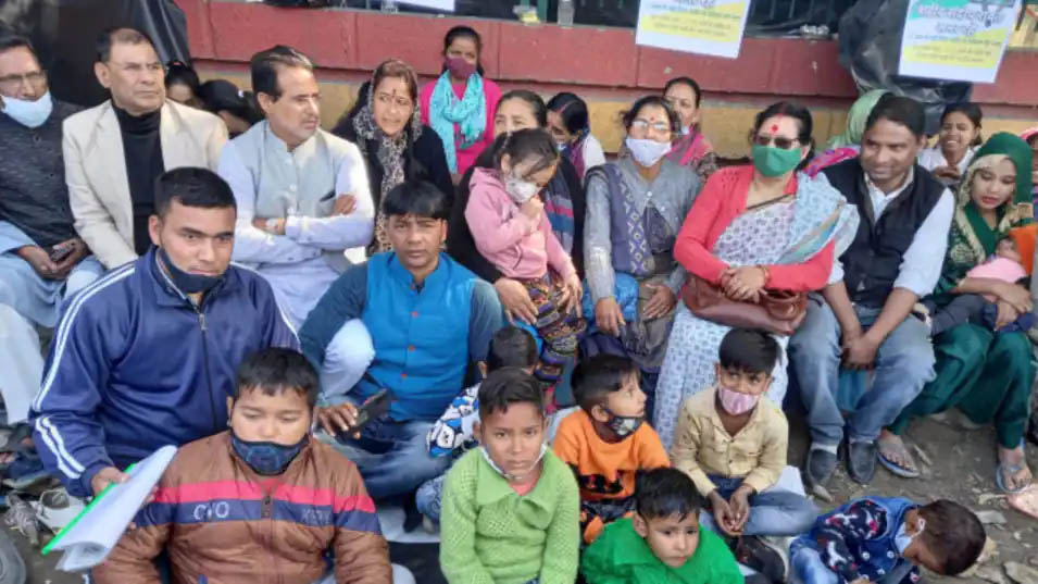 धरने पर बैठे शहीद संदीप रावत के परिजन