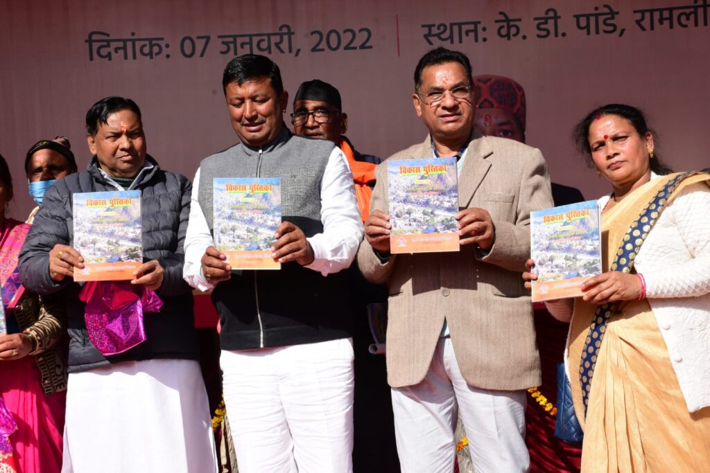 इस अवसर पर क्षेत्रीय जनता को संबोधित करते हुये मा0 विधायक बलवन्त सिंह भौर्याल ने जनता का आभार व्यक्त करते हुये कहा कि सभी के सहयोग एवं प्रेरणा से विधानसभा क्षेत्रान्तर्गत विकास कार्य संपादित किये गये है। उन्होंने कहा कि मा0 प्रधानमंत्री नरेन्द्र मोदी एवं युवा मुख्य मंत्री पुष्कर सिंह धामी के कुशल नेतृत्व में निरंतर विकास के कार्य संपादित किये जा रहे है तथा विगत 05 सालों में उनके विधानसभा क्षेत्र में 10 अरब के विकास एवं सड़क निर्माण के कार्य संपादित किये गये है। उन्होंने कहा कि पेयजल के लिये 55 करोड़ 60 लाख तथा जिला योजना के अन्तर्गत लोनिवि को 19 करोड़ 74 लाख, मा0 मुख्यमंत्री घोषणा में काण्डा पेयजल पंपिंग योजना के लिये 54 करोड़ 33 लाख, देवलचौरा पेयजल योजना के लिये 09 करोड़ 93 लाख, बेडामझेणा पंपिंग योजना के लिये 20 करोड़ 20 लाख ऐसे ही कर्इ महत्वपूर्ण विकास योजनायें संचालित की जा रही है। इस अवसर पर मुख्य अतिथियों द्वारा महिला सशक्तीकरण बाल विकास में संचालित महालक्ष्मी योजना के तहत 05 लाभार्थियों को किट वितरित किये गये तथा 02 लाभार्थियों को 02 स्वच्छता किट वितरित किये गये।