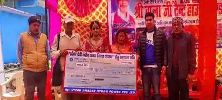 बागेश्वर। कपकोट। उत्तर भारत हाईड्रो पावर प्रालि कंपनी ने संतोष देवी गरीब कन्या धन योजना के तहत एक लाख का चेक भानी गावं की महिला को दिया। शादी समारोह में शामिल होने के लिए कंपनी के अधिकारी पहुंचे और उन्होंने यह चेक उन्हें सौंपा। मालूम हो कि कंपनी ने परियोजना प्रभावित क्षेत्र के गरीब लोगों के लिए संतोष देवी गरीब कन्या धन योजना चलाई है। इसी योजना के तहत शनिवार को भानी निवासी विमला देवी पत्नी स्व. कुंवर सिंह ऐठानी को मिला। उनकी बेटी किरन की शादी समारोह में कंपनी के प्रबंधक कमलेश जोशी ने उन्हें दिया। इस मौके पर कंपनी के देवानंद उनियाल, हेमंत कपकोटी आदि मौजूद रहे। सभी ग्रामीणों ने कपंनी द्वारा चलाई गई येाजना पर खुशी जताई। कंपनी प्रबंधन ने चयान के लिए अमल में लाई जा रही पारदर्शी प्रक्रिया पर ब्लॉक प्रशासन और तहसील प्रशासन का आभार जताया। प्रबंधक ने उप जिलाधिकारी पारितोष वर्मा तहसीलदार पूजा शर्मा के प्रति भी आभार जताया।