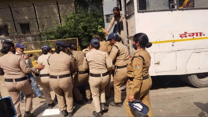 देहरादून। कोरोना काल में आउटसोर्सिंग के माध्यम से नौकरी पर रखे गए और अब हटा दिए गए स्वास्थ्य कर्मियों ने सेवा विस्तार की मांग को लेकर सोमवार को मुख्यमंत्री आवास की ओर कूच कर रहे गर्भवती महिला कर्मचारी के पेट पर महिला पुलिसकर्मी ने पैर रख दिया जिस कारण उसकी हालत खराब हो गयी।