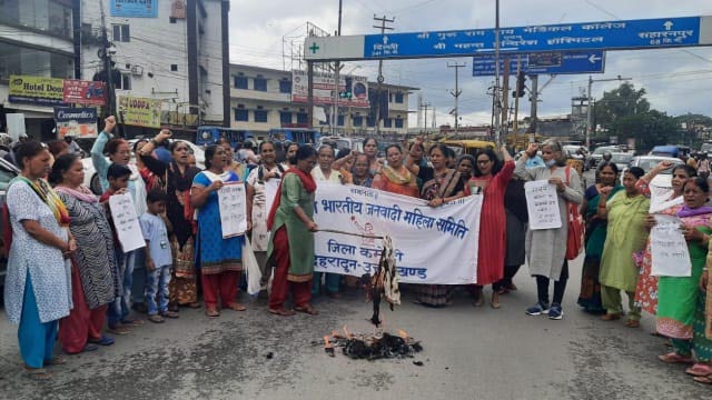 देहरादून। प्रदेश में बढ़ रही अपराधिक गतिविधियों पर रोक लगाने और अंकिता के हत्यारों को कड़ी सजा देने की मांग को लेकर जनवादी महिला समिति ने रविवार को देहरादून के पटेल नगर स्थित लालपुल पर विरोध प्रर्दशन किया। इस दौरान पदाधिकारियों, सदस्यों ने सरकार का पुतला दहन किया व बिगड़ती कानून व्यवस्था पर रोष व्यक्त किया। सभी ने अंकिता के हत्यारों को कड़ी सजा देने की मांग की। इस दौरान समिति की प्रान्तीय उपाध्यक्ष इन्दु नौडियाल, महामन्त्री दमयंती नेगी, एसएफआई महामंत्री हिमांशु चौहान, समिति की जिलाध्यक्ष नुरैशा अंसारी, सचिव सीमा लिंगवाल, उपाध्यक्ष बिन्दा मिश्रा,पूनम आर्य, शबनम, विमला भट्ट, रेखा चौहान, सुनीता आदि मौजूद रहे।
