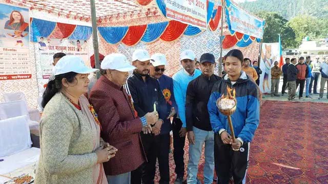 बागेश्वर। युवा कल्याण विभाग तथा प्रातीय रक्षक दल के तत्वावधान में डिग्री कॉलेज खेल मैदान में मंगलवार को पांच दिवसीय खेल महाकुभ का शुभारंभ हो गया है। मुख्य अतिथि कैबिनेट मंत्री चंदन राम दास ने मशाल जलाकर प्रतियोगिता शुभारंभ किया। गत वर्ष की चैंपियन ने जलती मशाल लेकर मैदान का चक्कर लगाया। प्रतियोगिता के दौरान खो-खो, कबड्डी, एथलीड, गोपा फेंक, चक्का फेंक आदि प्रतियोगिता आयोजित होंगी। मुख्य अतिथ दास ने कहा कि खेलों में सुनहरा भविष्य छिपा है। इसे आगे बढ़ाने में सरकार दिन-रात काम कर रही है। गांव का प्रतिभावान छात्र राष्ट्र स्तर भी जा सकता है। यह प्रतियोगिता न्याय पंचायत से शुरू होकर प्रदेश स्तर तक जाती है। विशिष्ट अतिथि जिला पंचायत अध्यक्ष बंसती देव ने सभी खिलाड़ियों से खेल भावना के साथ मैदान में जाने की अपील की।