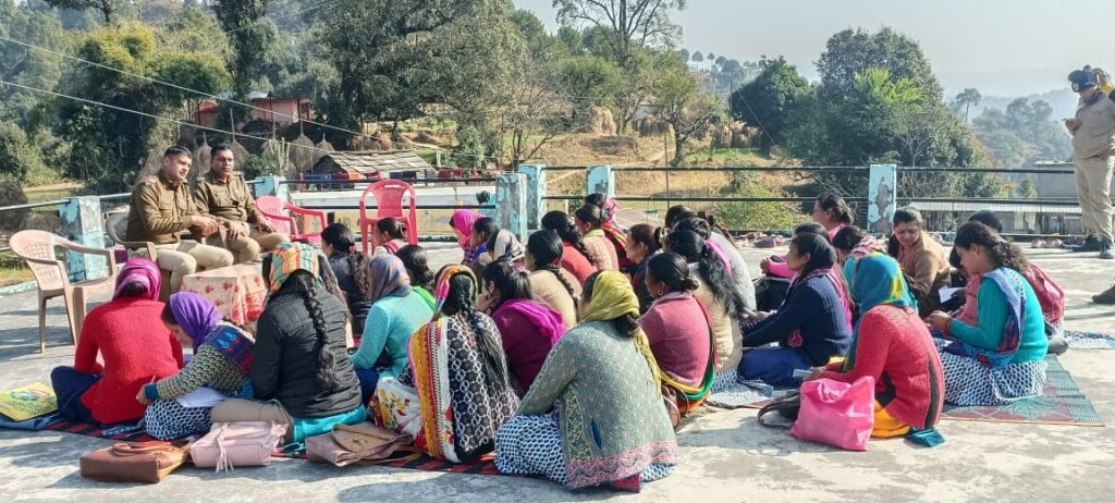 बागेश्वर गरुड़ । पुलिस अधीक्षक बागेश्वर श्री हिमांशु कुमार वर्मा के आदेशानुसार, जनपद स्तर पर चलाये जा रहे जनजागरुकता कार्यक्रम के दृष्टिगत थानाध्यक्ष बैजनाथ श्री कैलाश सिंह बिष्ट द्वारा आज दिनांक 02.01.2023 को थाना क्षेत्रान्तर्गत ग्राम गलई कंधार में आंगनवाड़ी कार्यकर्ताओं व महिला सीएलजी मेम्बरों को नशे के दुष्परिणामों, यातायात नियमों की जानकारी देते हुए UTTARAKHAND POLICE APP “/गौरा शक्ति की सुविधाओं से कराया रूबरू साथ ही गौरा शक्ति में रजिस्ट्रेशन करने की प्रक्रिया को बताया गया। उपस्थित सभी को अपने रिश्तेदारों व आसपास के लोगों को इस संबंध में जागरूक कर गौरा शक्ति में अपनी माताओं-बहनों का रजिस्ट्रेशन कराने के लिए प्रेरित किया गया। गौरा शक्ति एप के बारे में जानकारी हेतु हुए बताया गया कि किसी भी प्रकार की समस्या होने पर उक्त एप के माध्यम से घर बैठे शिकायत दर्ज करा सकते हैं ।