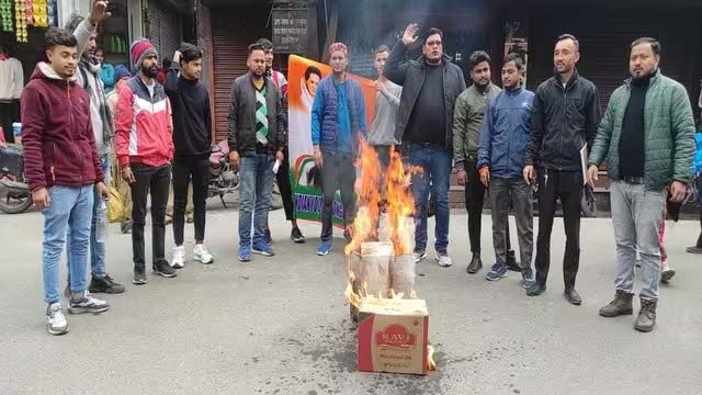 पटवारी परीक्षा पेपर लीक पर कांग्रेस ने फूंका प्रदेश सरकार का पुतला