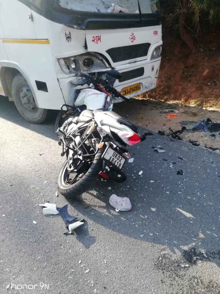 बागेश्वर में बस व बाईक की टक्कर में एक कि मौत 1 घायल