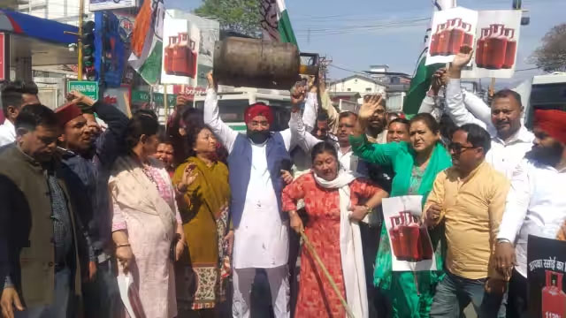 गैस सिलेंडर की बढ़ी कीमतों के विरोध में कांग्रेस का प्रदर्शन