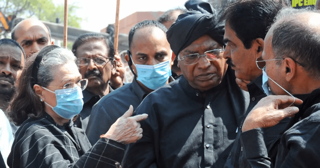 कांग्रेस और कुछ अन्य सहयोगी दलों के सांसदों ने विरोध स्वरूप काले कपड़े पहन रखे थे। संसद भवन परिसर में महात्मा गांधी की प्रतिमा के समक्ष दिए गए इस धरने में कांग्रेस संसदीय दल की प्रमुख सोनिया गांधी, पार्टी अध्यक्ष मल्लिकार्जुन खडग़े, कांग्रेस के कई सांसद, द्रविड़ मुनेत्र कषगम (द्रमुक) के टी आर बालू, रिवोल्यूशनरी सोशलिस्ट पार्टी (आरएसपी) के एनके प्रेमचंद्रन और कुछ अन्य नेता शामिल हुए। कांग्रेस के सभी सांसदों, द्रमुक के बालू और आरएसपी के प्रेमचंद्रन ने काले कपड़े पहने हुए थे। संसद परिसर में धरने के बाद विपक्षी सांसदों ने विजय चौक तक मार्च निकाला। उन्होंने हाथों में एक बड़ा बैनर ले रखा था जिस पर ‘सत्यमेव जयते लिखा हुआ था।