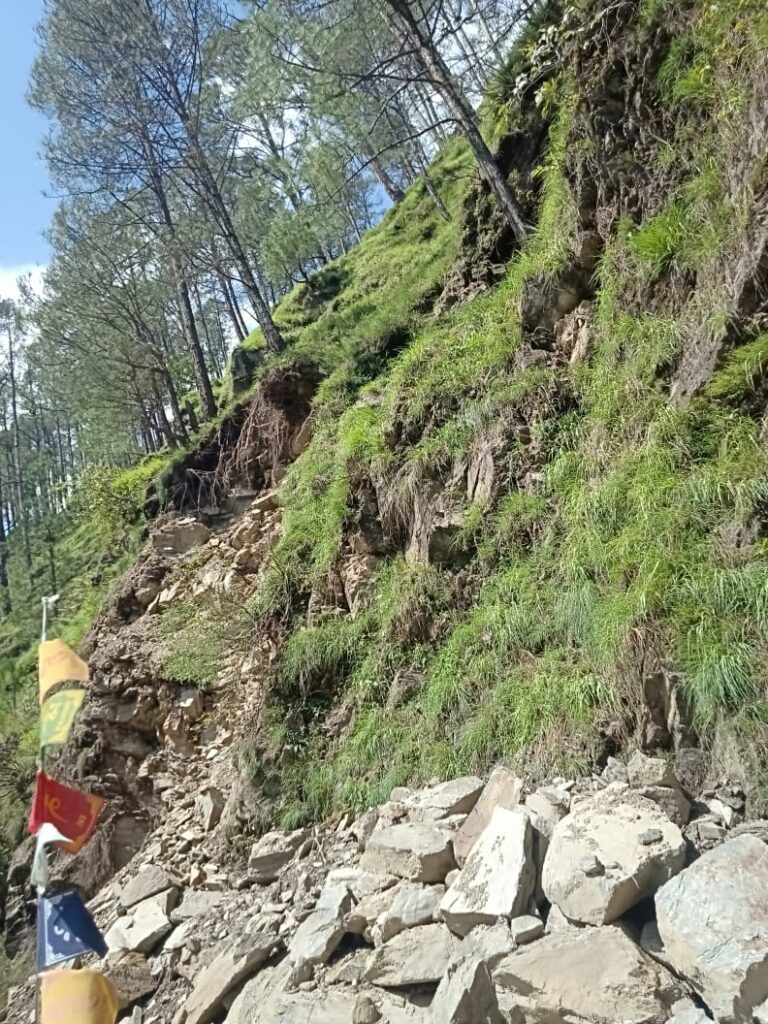 गरुड़ विकासखंड अंतर्गत गोमती घाटी क्षेत्र में थापलीधार (मैगड़ी स्टे्ट) तथा नृसिंह मंदिर के बीच कन्धार-रौल्याना-मजकोट मोटरमार्ग में विगत् दिनों में भारी वर्षा के कारण भूस्खलन हुआ था, जिस कारण सड़क के किनारे दो चीड़ के पेड़ों की जड़ों से मिट्टी खाली हो चुकी है। वे दोनों पेड़ कभी भी गिर सकते हैं। जिनसे वाहनों को बहुत खतरा बना हुआ है। चूंकि यह मोटरमार्ग गोमती घाटी का मुख्य मार्ग है। इसी मार्ग से राजकीय इंटर कालेज मैगडी स्टे्ट में अध्ययन करने वाले बच्चे पैदल आते जाते हैं। प्रतिदिन वाहन आवागमन करते हैं।