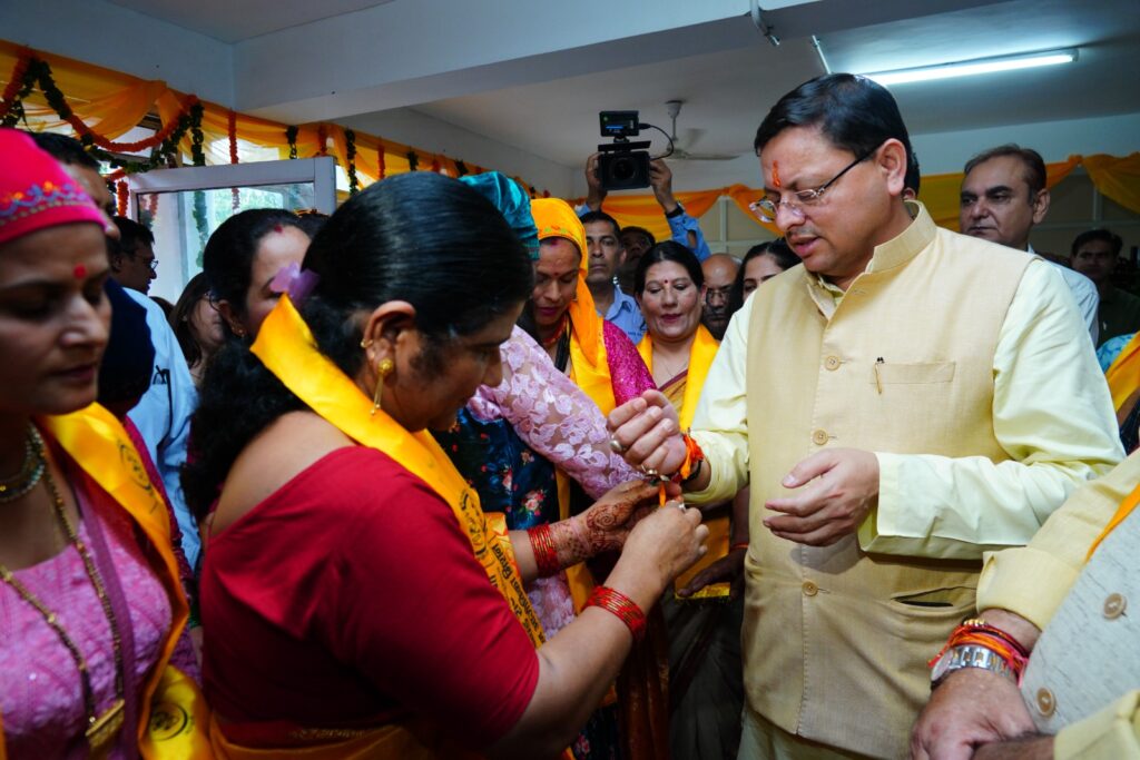 सीएम धामी ने किया महिला स्वयं सहायता समूहों द्वारा लगाये गये राखी के स्टॉलों का अवलोकन