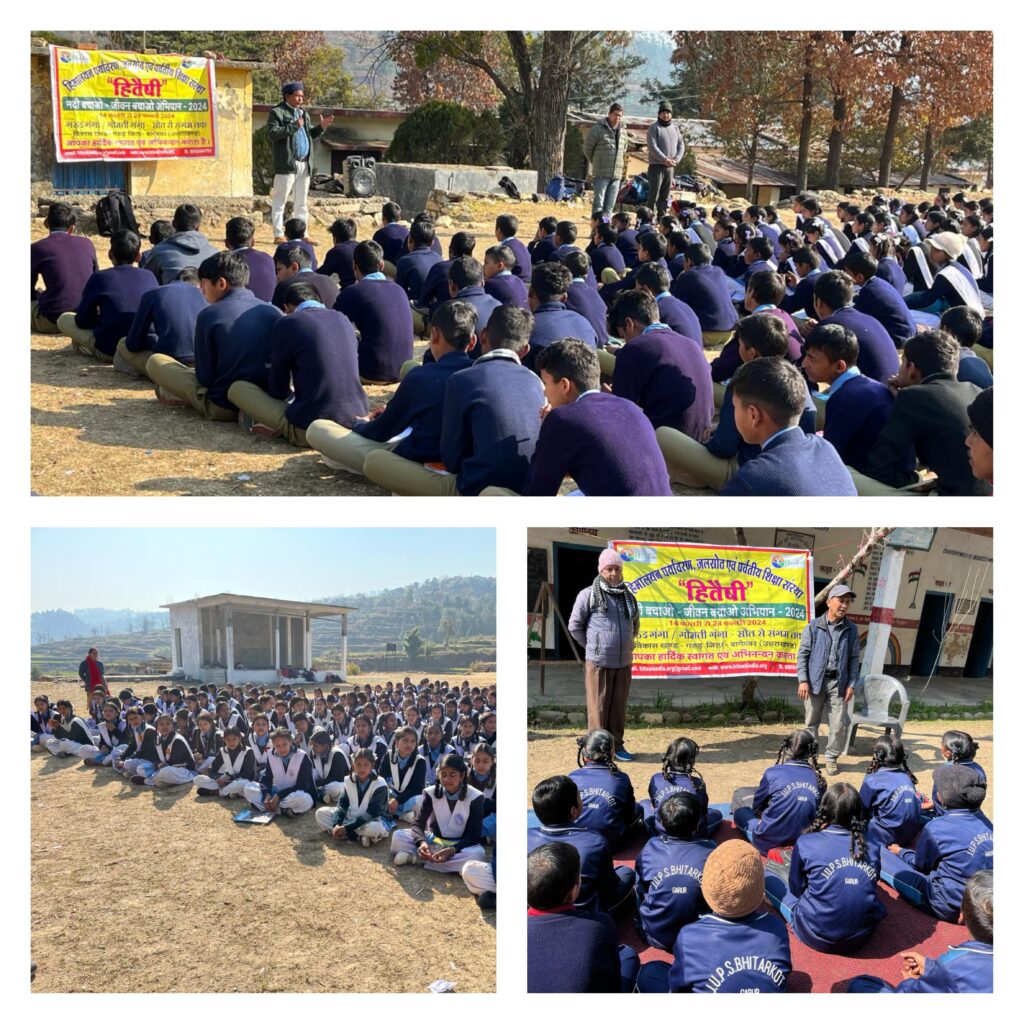 बागेश्वर गरुड़ । आज हितैषी संस्था के तत्वावधान में राजकीय इंटर कॉलेज बनतोली में सामाजिक संस्था के 10 दिवसीय नदी बचाओ जीवन बचाओ अभियान में कालेज के छात्र छात्राओं ने पर्यावरण से सम्बंधित अनेक नारे लगाकर अपनी उपस्थिति दर्ज की ।