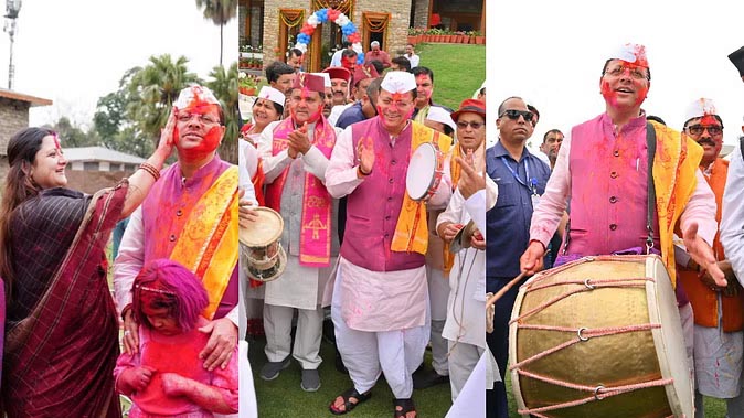 मुख्यमंत्री आवास पर रही होली की धूम, ढोल-दमाऊ की थाप पर जमकर थिरके सीएम