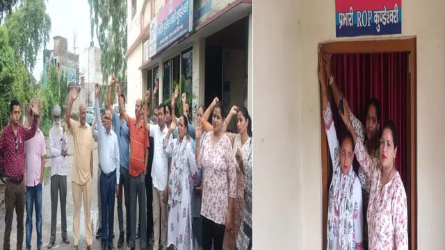 महिलाओं ने चौकी इंचार्ज के कार्यालय के बाहर चूड़ियां टाँगी