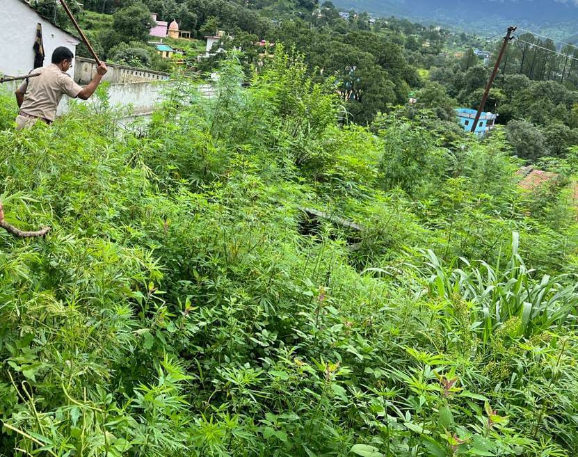 बैजनाथ पुलिस ने भेंटा गाँव में 3 नाली भाँग की फसल की नष्ट