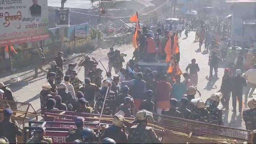 प्रदर्शनकारी मुख्य बाजार होते हुए भटवाड़ी रोड तक पहुंचे ही थे कि पुलिस ने बैरिकेडिंग लगाकर उन्हें रोक लिया। इस दौरान प्रदर्शनकारियों और पुलिक के बीच नोकझोंक भी हुई। बताया जा रहा है कि इस दौरान प्रदर्शनकारियों पुलिस पर पथराव भी किया, जिसके बाद पुलिस की तरफ से भी बल प्रयोग किया। पुलिस ने भीड़ को खदेड़ने के लिए लाठीचार्ज भी किया। पथराव में कई पुलिसकर्मी घायल भी हुए, जिन्हें इलाज के लिए सरकारी हॉस्पिटल ले जाया गया है।