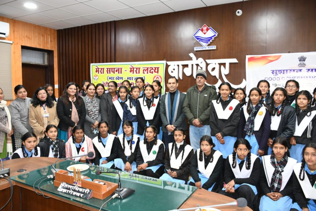 बागेश्वर । सुशासन सप्ताह एवं बेटी बचाओ,बेटी पढ़ाओ कार्यक्रम के तहत बेटियों के लिए मेरा सपना,मेरा लक्ष्य (म्यर स्वैण-म्यर लक्ष्य) कार्यक्रम आयोजित किया गया। डीएम आशीष भटगांई एवं महिला अधिकारियों ने बेटियों के साथ संवाद किया। बेटियों के सपने और लक्ष्य की प्राप्ति के लिए उन्हें प्रेरणा दी तथा अपने अनुभवों को साझा किया। उसके बाद बेटियों को सरकारी कार्यालयों के क्रियाकलापों और सरकार की स्वरोजगार परक एवं जनकल्याणकारी योजनाओं से लाभान्वित होने वाले लाभार्थियों के बारे में जानकारी प्रदान की गई। तथा कलेक्ट्रेट कार्यालय के साथ ही विकास भवन,एसपी कार्यालय का एक्सपोजर विजिट कराया गया।