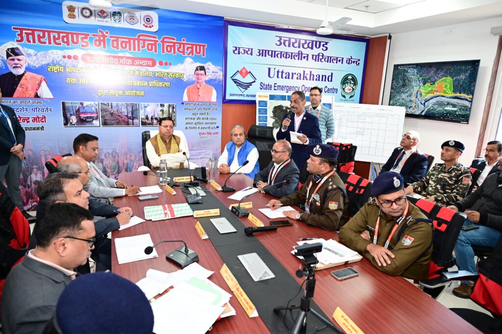 देहरादून । राज्य में वनाग्नि की चुनौतियों से समाधान के लिए वनाग्नि की पिछली घटनाओं में आई समस्याओं का ध्यान में रखते हुए आगे की योजनाएं बनाई जाए। वनाग्नि पर नियंत्रण के लिए जन भागीदारी सुनिश्चित की जाए। सभी विभागों के साथ ही सामाजिक संगठनों, गैर सरकारी संगठनों, महिला मंगल दलों, युवक मंगल दलों और वन पंचायतों का भी वनाग्नि की घटनाओं को रोकने में सहयोग लिया जाए। वनों में आग लगाने वाले असामाजिक तत्वों के खिलाफ भी सख्त कार्रवाई की जाए। ये निर्देश मुख्यमंत्री श्री पुष्कर सिंह धामी ने गुरूवार को आई.टी.पार्क देहरादून स्थित राज्य आपदा प्रबंधन प्राधिकरण में वनाग्नि नियंत्रण के लिए राष्ट्रीय आपदा प्रबंधन प्राधिकरण, गृह मंत्रालय भारत सरकार तथा उत्तराखण्ड राज्य आपदा प्रबंधन प्राधिकरण द्वारा आयोजित मॉक ड्रिल के दौरान अधिकारियों को दिये।