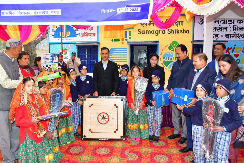 बागेश्वर गरुड़ । जिलाधिकारी आशीष भटगांई ने विकास खंड गरुड़ के राजकीय प्राथमिक विद्यालय देवलखेत में कॉनकॉर एवं सुविधा के सहयोग से स्मार्ट क्लास,वाल पेंटिंग व शौचालय नवीनीकरण कार्यो का रिवन काटकर लोकापर्ण किया। इस दौरान बच्चों द्वारा रंगारग कार्यक्रम प्रस्तुत किए। जिलाधिकारी ने स्मार्ट क्लास का निरीक्षण किया व बच्चों को खेल सामग्री वितरित की।