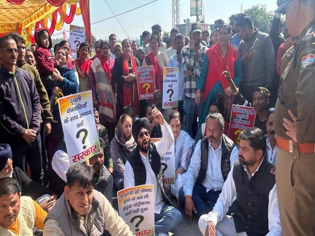 दूधली के ग्रामीणों का सड़क पर प्रदर्शन