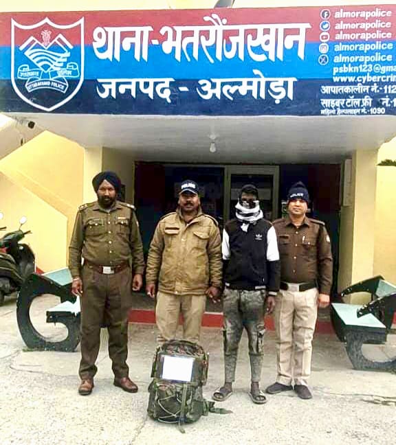 अल्मोड़ा । एसएसपी देवेंद्र पिंचा के सख्त निर्देशों के तहत जिले में नशा तस्करों के खिलाफ लगातार कार्रवाई की जा रही है। इसी अभियान के तहत भतरौजखान पुलिस और एसओजी की संयुक्त टीम ने चेकिंग के दौरान एक युवक के पिट्ठू बैग से 13.240 किलोग्राम गांजा बरामद किया, जिसकी कीमत 3.31 लाख रुपये बताई जा रही है। पुलिस ने आरोपी को गिरफ्तार कर लिया है और उसके खिलाफ एनडीपीएस एक्ट के तहत मामला दर्ज कर वैधानिक कार्रवाई की गई है। मिली जानकारी के अनुसार भतरौजखान थानाध्यक्ष सुशील कुमार व एसओजी प्रभारी भुवन जोशी के नेतृत्व में पुलिस टीम ने चौड़ी घट्टी क्षेत्र में चेकिंग अभियान चलाया। इसी दौरान एक युवक पिट्ठू बैग लेकर संदिग्ध रूप से घूमता नजर आया। पुलिस ने जब उससे बैग के बारे में पूछताछ की, तो उसने उसमें निजी सामान और कपड़े होने की बात कही, लेकिन जांच करने पर बैग से बड़ी मात्रा में गांजा बरामद हुआ। गिरफ्तार आरोपी की पहचान इबरान (23) पुत्र हमीद, निवासी कचनाल गाजी, कुमाऊं कॉलोनी, काशीपुर, जिला उधम सिंह नगर के रूप में हुई है। पूछताछ में उसने कबूल किया कि वह यह गांजा सराईखेत से रामनगर ले जा रहा था। इस कार्रवाई में थाना भतरौजखान से अपर उपनिरीक्षक करतार सिंह, हेड कांस्टेबल श्रवण कुमार, सुदर्शन नयाल तथा एसओजी अल्मोड़ा से अवधेश कुमार और परवेज अली शामिल रहे।