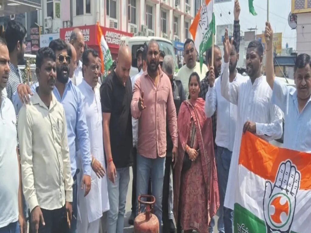 मंहगाई के खिलाफ कांग्रेस के दूसरे गुट ने चंद्राचार्य चौक पर किया प्रदर्शन