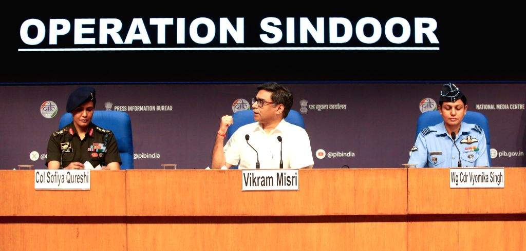 नई दिल्ली । ‘ऑपरेशन सिंदूरÓ को लेकर भारतीय सेना, वायुसेना और विदेश मंत्रालय ने संयुक्त प्रेस ब्रीफिंग की, जिसमें विदेश सचिव विक्रम मिस्री, वायुसेना की विंग कमांडर व्योमिका सिंह और भारतीय सेना की लेफ्टिनेंट कर्नल सोफिया कुरैशी शामिल हुईं। सैन्य अधिकारियों ने आतंकी ठिकानों पर किए गए हमले की क्लिप भी दिखाई।