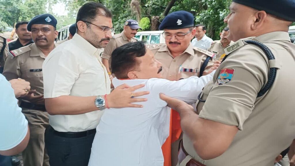 -कांग्रेस अध्यक्ष करन माहरा समेत कांग्रेसियों को हिरासत में लिया